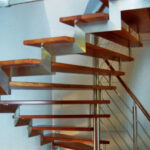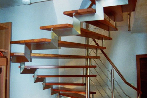 Als „freitragend“ bezeichnet man eine Stiege, wenn sie sich zwischen den Geschoßdecken frei trägt, ohne dabei Seitenwände oder Abhängungen für die Statik zu Hilfe zu nehmen.