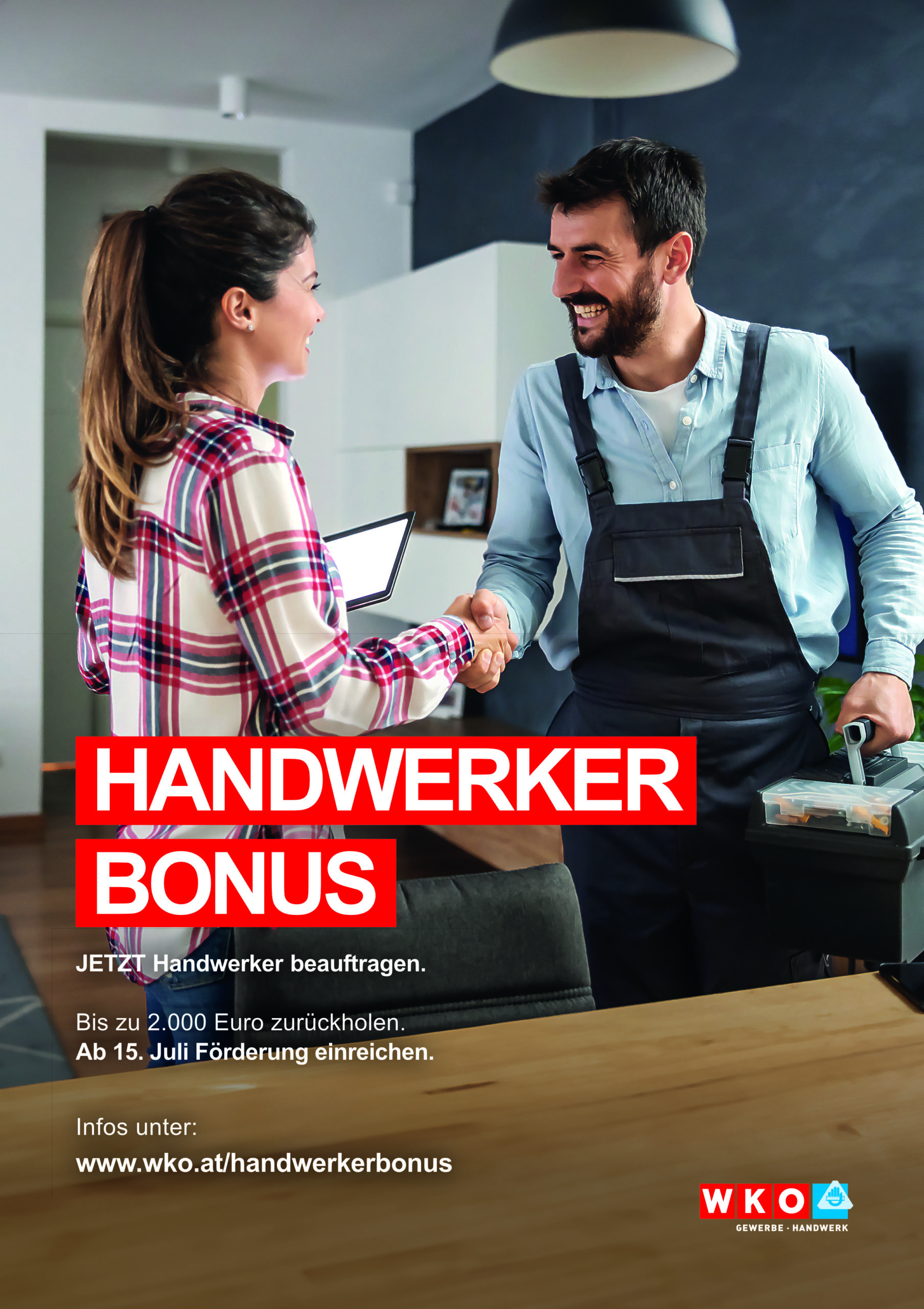 Beantragen kann man den Handwerkerbonus einfach online unter www.handwerkerbonus.gv.at, oder auch beim Gemeindeamt!