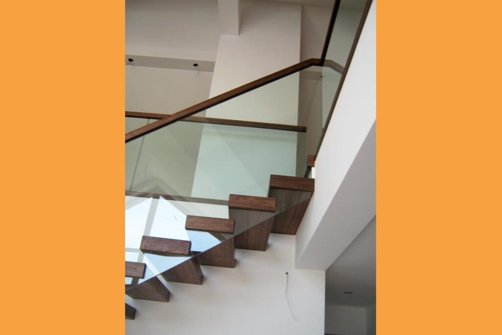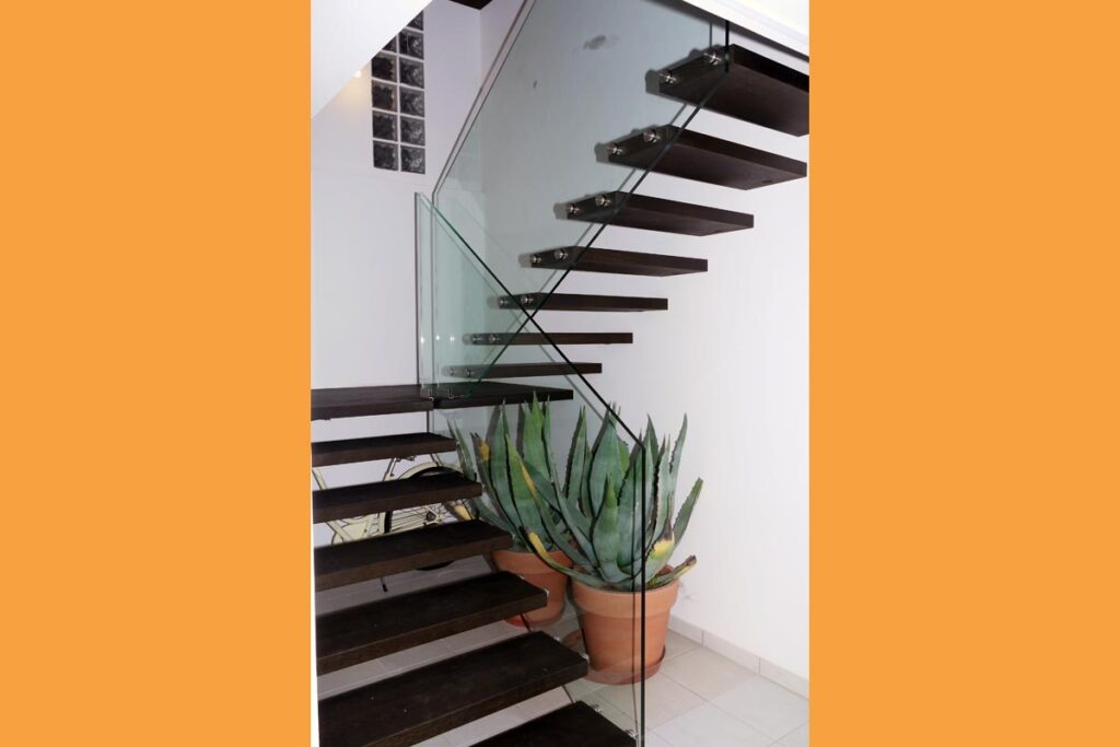 Als Geländer finden meiste leichte Konstruktionen aus Glas oder Niro-Seilen ihren Einsatz, um den freischwebenden Charakter besonders zu betonen.